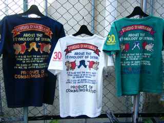 2009/05/11 Category : HONKEYTONK HT:STUDIODARTISAN”30周年”!! STUDIODARTISAN ”30周年記念” 吊り編み天竺プリントTシャツ SIZE-S,M,L ¥8715 筒状にゆっくりと編み上げられた生地はかなり丈夫な仕上がりに!袖には30周年の文字が!!ダルチザンらしい一枚です! STUDIODARTISAN ”30周年記念” SIZE-30,32,34 ¥27090 実はこれ写真だと分かりにくいんですが、左が銀で右が金になっているんです!!内側にはシリアルナンバーが入っています!150本限定生産で、気になる方はお早めに!! ラベルも豪華!!店頭に見に来てください♪