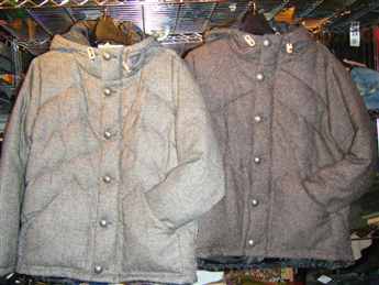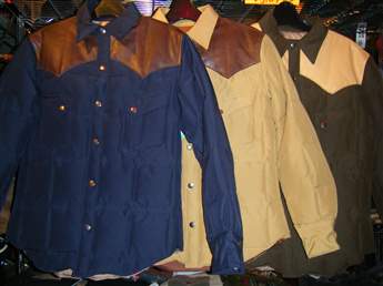 2008/11/21 Category : HONKEYTONK HT☆新作入荷!!! 冬本番!!!この寒さに勝てるアウターをご紹介!! SUGAR CANE 牛革ヨーク切替ウエスタンダウンジャケット SIZE:M.L ¥27,090 全6色!シャツのようなダウンジャケットなので細身で軽くて動きやすい!ボディーの色によってレザーの色も変わります!動きにくいアウターとはおさらば☆ BROWNS コンチョボタンツイードダウンジャケット SIZE:M,L ¥20,790 とってもオシャレなツイード生地のダウンが入荷しました!デザインはシンプルに落ち着いた感じに。袖口は二重になっていて冷気をシャットアウト!!飽きのこない一枚です!レディーウケも良(笑) DOVETAIL ニットジップパーカー SIZE:M ¥19,740 なんともイイ柄イイ色!カウチンなど着てる方も多いとは思いますが、フード付きになることでググンと着やすさ、着回しさアーップ!!ぜひぜひオススメしたい一枚!!