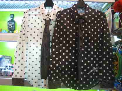 2008/12/17 Category : LIQUID 新作情報☆ <Grab Heart> Mash Crown(ペンダントトップ) ¥18000 グラブハート新作出来ました!! 今回は、マッシュポテトをベースに潰れたクラウンを イメージ! 雪の結晶みたいにも見えますね☆ クリスマスプレゼントにどうですか?? <MILK BOY> ネクタイ付きドットシャツ ¥15540 これぞ、ミルクボーイ!!って感じですネ☆ 見にくいと思いますが、実はネクタイもドットになってます♪ 春先に、一枚で着たくなっちゃうシャツですね! <LONSDALE> ライン入りジャージ ¥11340 お待たせしました!! 復活すると宣言してから、どれだけたったか・・・すいません(泣) 復活第一弾は、やっぱり定番のトラックジャケットでしょう!! 相変わらず、格好いいぃぃぃ!!! ちなみに、フード付きのタイプもあります。