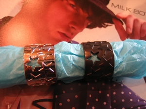 2009/01/12 Category : LIQUID ☆LQ☆ドンドン新作載せます!! ☆MILK BOY☆ スター柄リング ¥5460 カラー・・・BLK、SILVER 見ずらいかもしれませんが(笑)、一ヶ所だけ星型にくり抜いてある部分があります! 比較的シンプルなデザインなので、ペアで付けてても良いですよね♫
